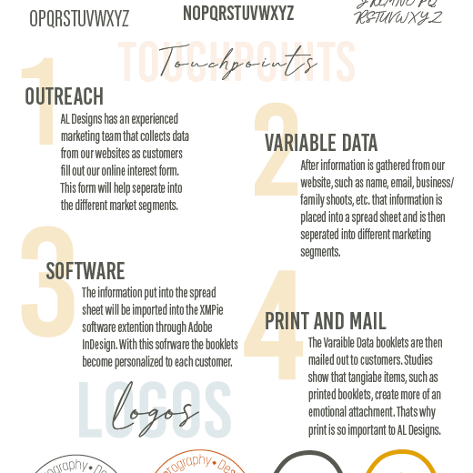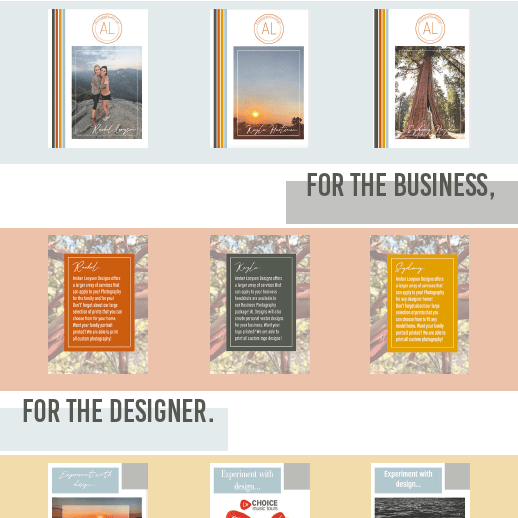 The Brand Story I created for a school project displays information about my personal brand. This eight-page booklet spread contains the target market, marketing strategies, brand colors, and more. all designs and images are personally created.